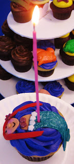 On Saturday, I had an order for Under the Sea themed birthday cupcakes for a little girl's birthday party. She had her party at Pump it Up & everyone enjoyed the cupcakes thoroughly. They ordered four dozen standard cupcakes...Burgundy Velvet, Blondie, Chocolicious, & TARAmisu. They were so fun to customize! I made a little mermaid out of fondant for the birthday girl & some star fish, seaweed, seashells, a variety of fish, and a cute little octopus...my fav;)